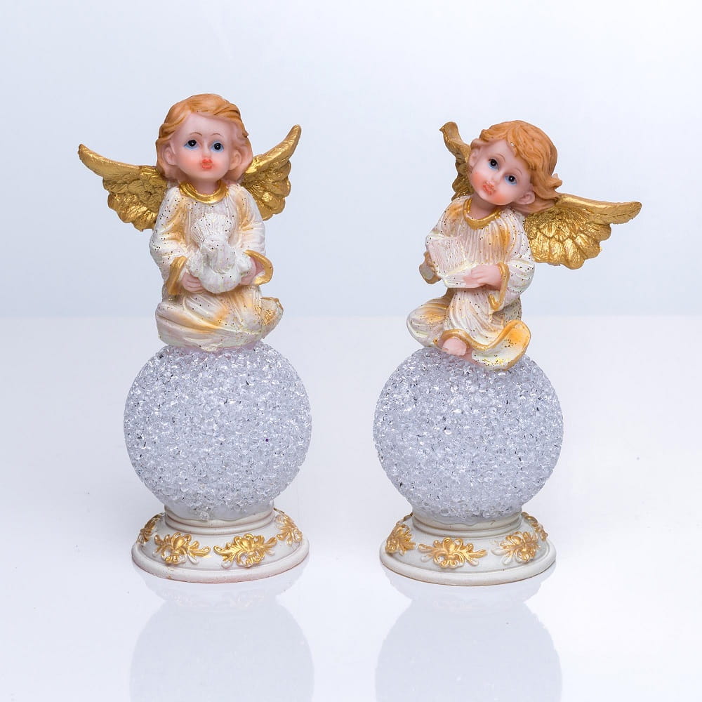 Aniołek z gołąbkiem na świecącej kuli