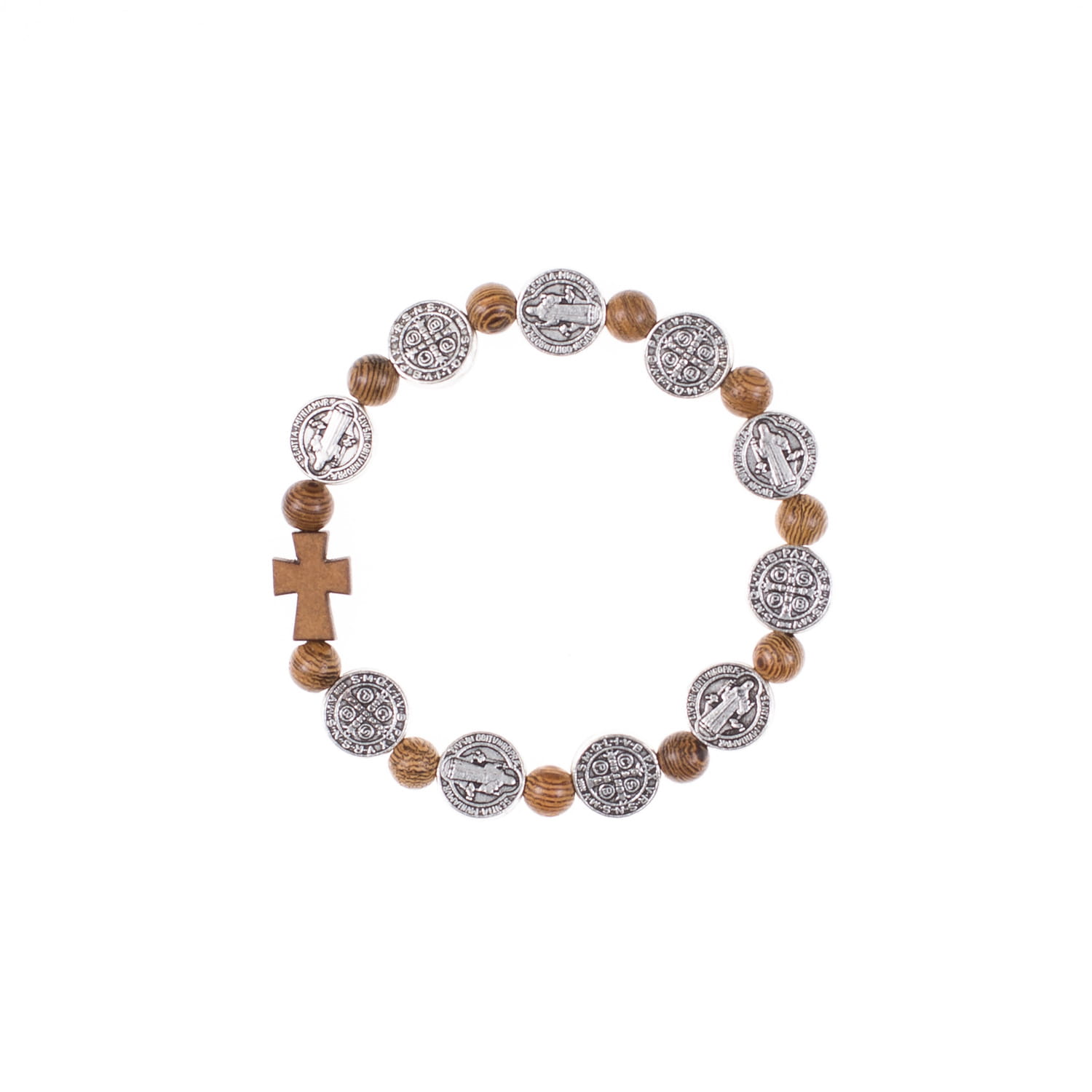 Bransoletka - dziesiątek różańca - drewno - św. Benedykt