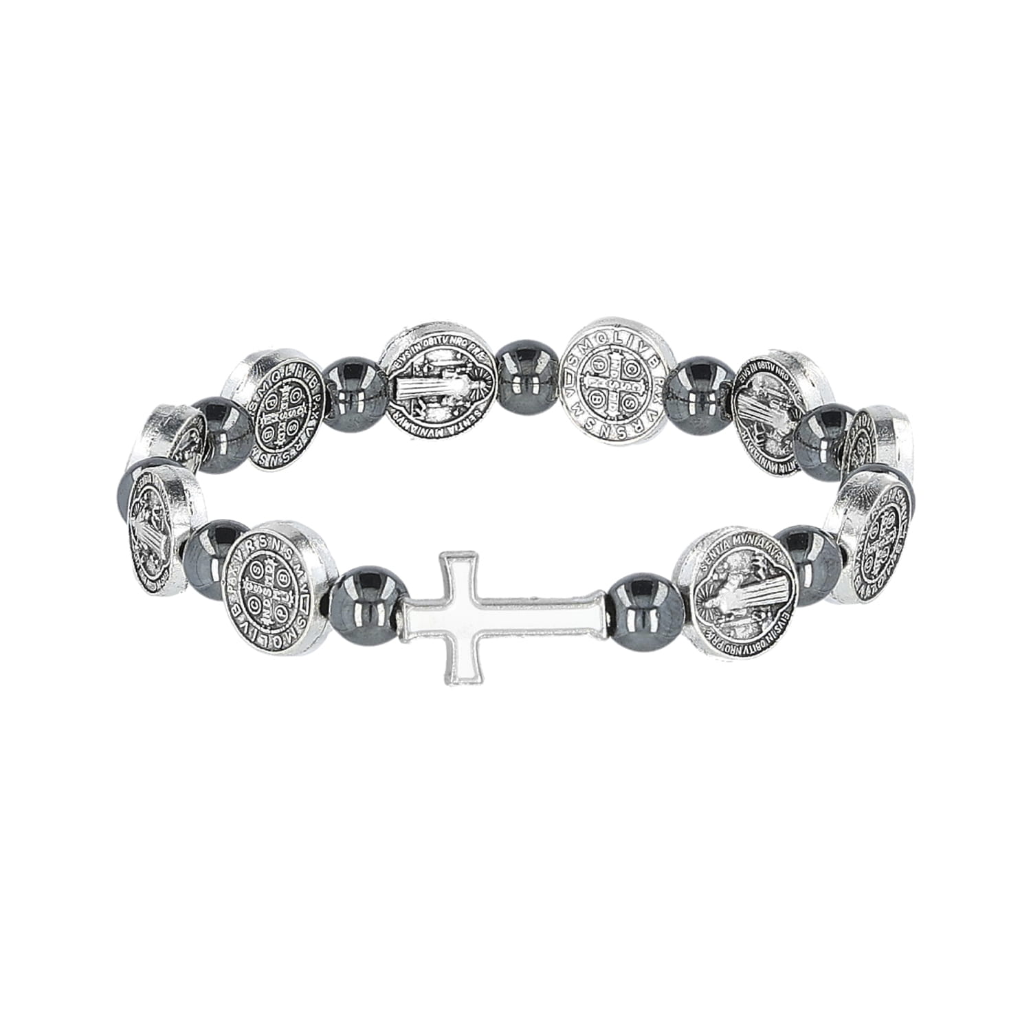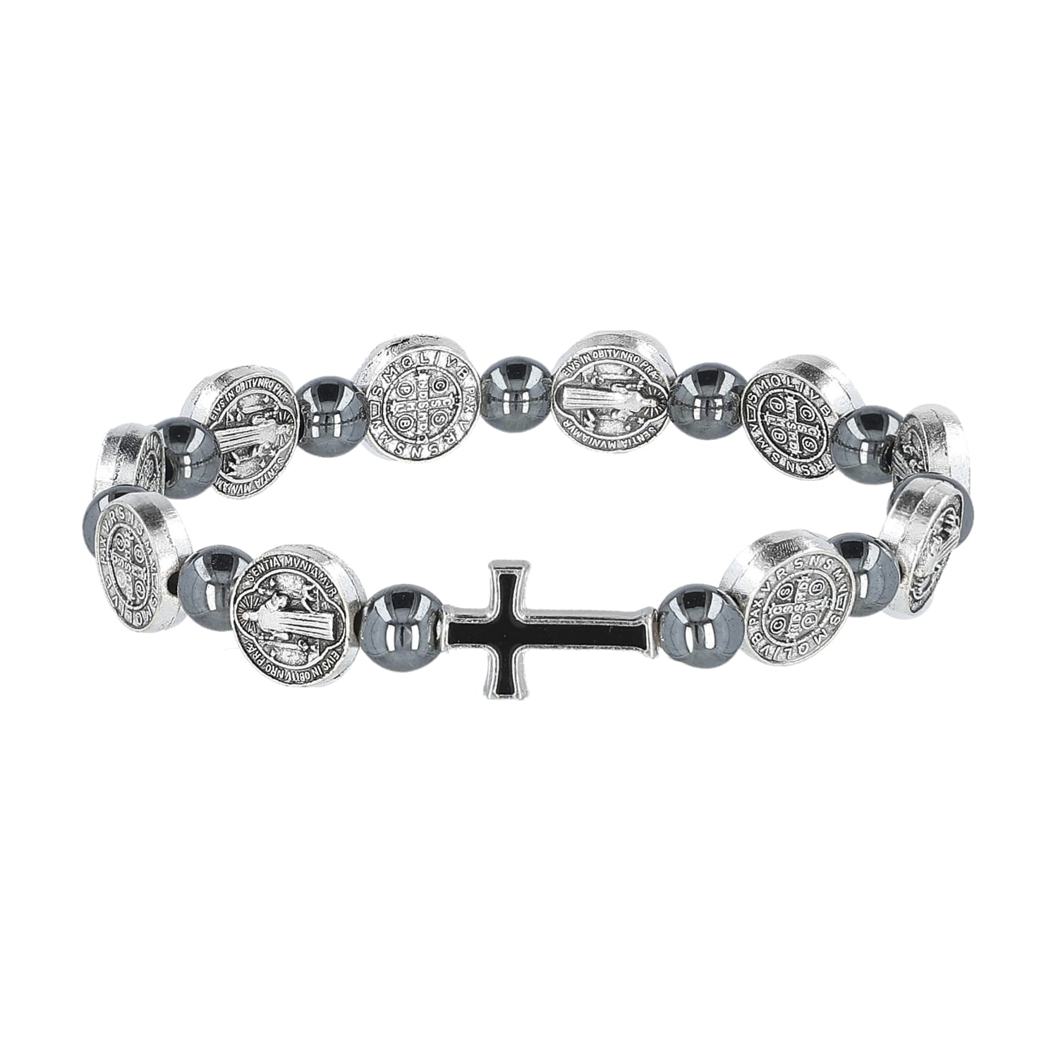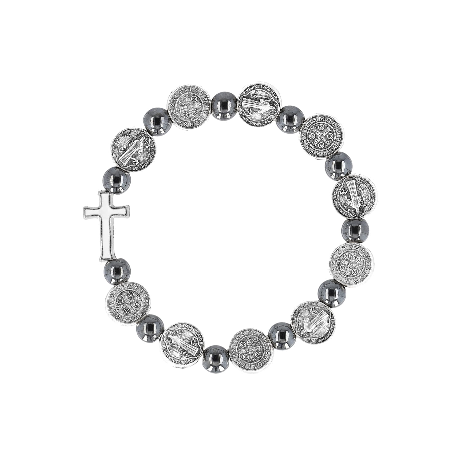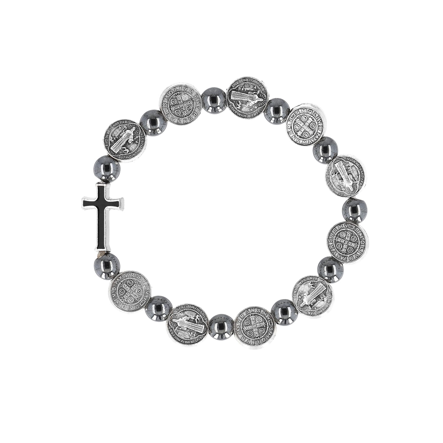Bransoletka - dziesiątek różańca - św. Benedykt - 10 mm - Hematyt