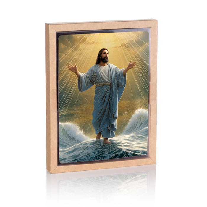 Ikona religijna Ikona Religijna Chrystus chodzący po wodzie to ponadczasowy wizerunek, który umacnia wiarę i wnosi pokój do domu. Ikona Religijna Chrystus chodzący po wodzie – Symbol Miłości, Pokoju i Opatrzności Bożej Ikona religijna. Idealna do modlitwy i kontemplacji, pomaga skupić serce na tym, co najważniejsze.