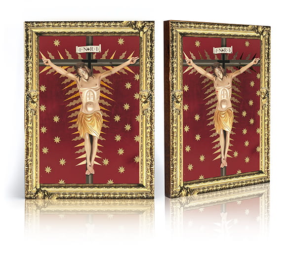 - Ręczne złocenie – nadaje sakralny blask i podkreśla piękno wizerunku.