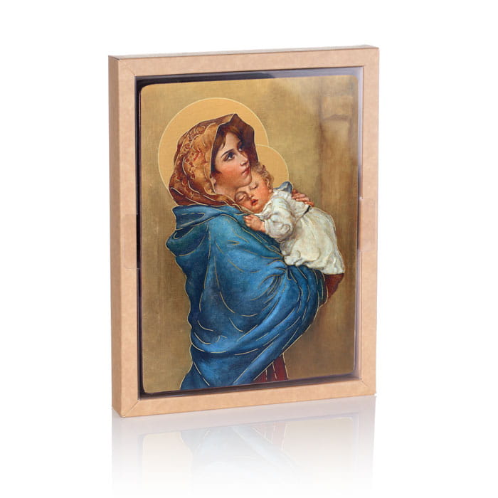 - Ręczne złocenie – nadaje sakralny blask i podkreśla piękno wizerunku.