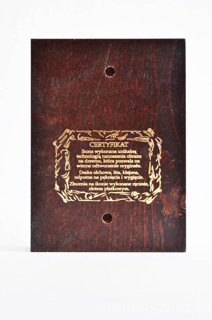 • Ręczne złocenie – nadaje sakralny blask i podkreśla piękno wizerunku.