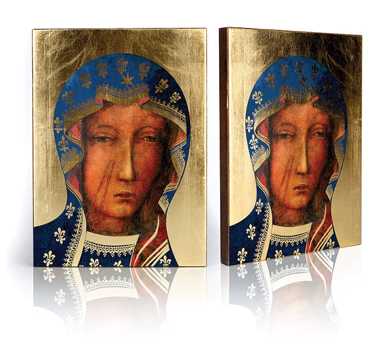 • Ręczne złocenie – nadaje sakralny blask i podkreśla piękno wizerunku.