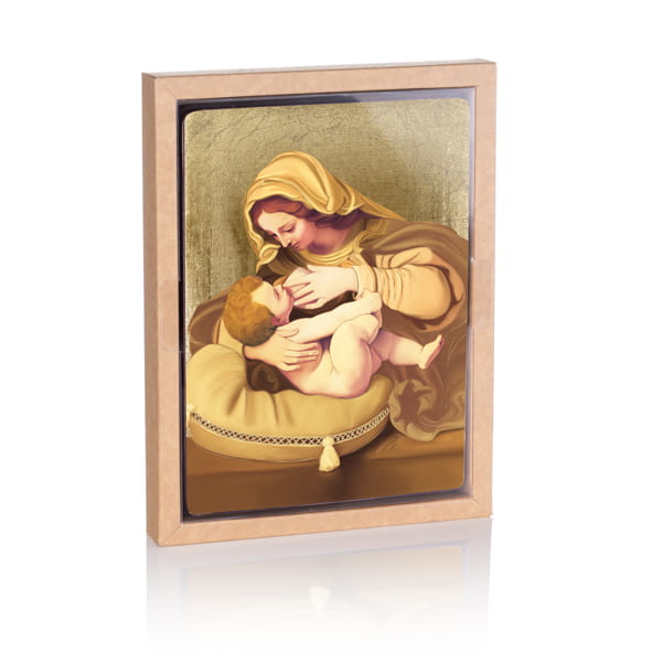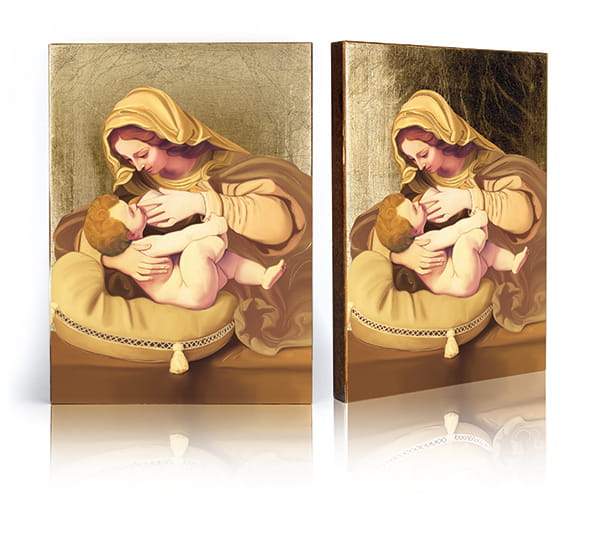 • Ręczne złocenie – nadaje sakralny blask i podkreśla piękno wizerunku.
