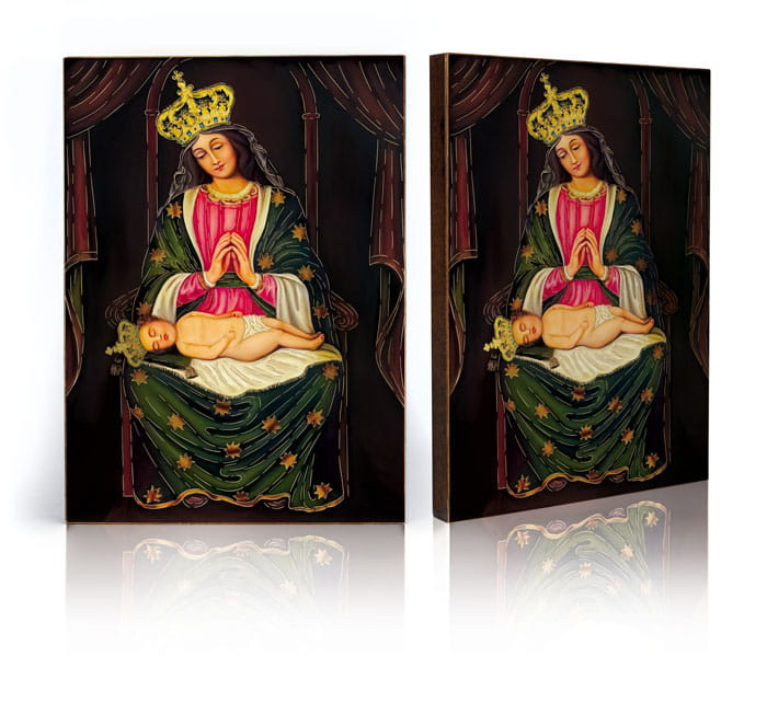 - Ręczne złocenie – nadaje sakralny blask i podkreśla piękno wizerunku.