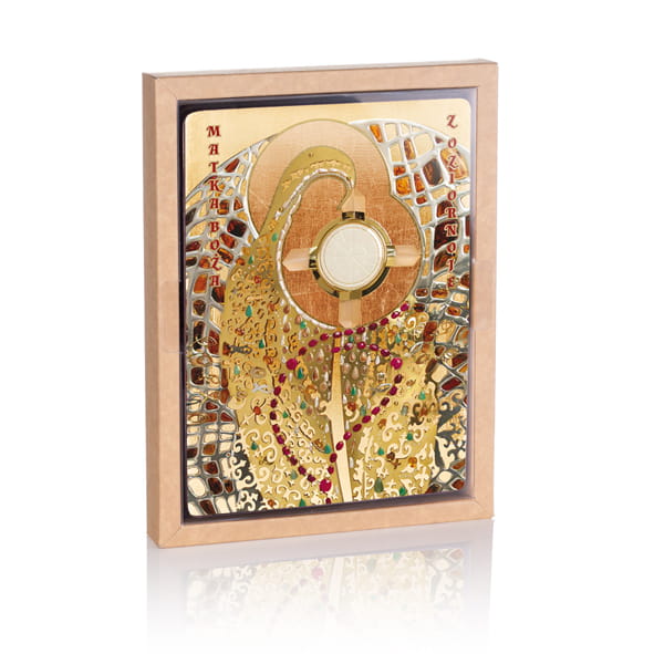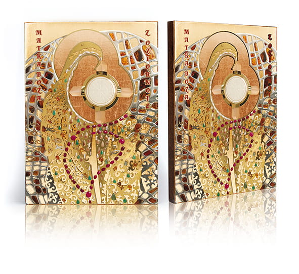 - Ręczne złocenie – nadaje sakralny blask i podkreśla piękno wizerunku.