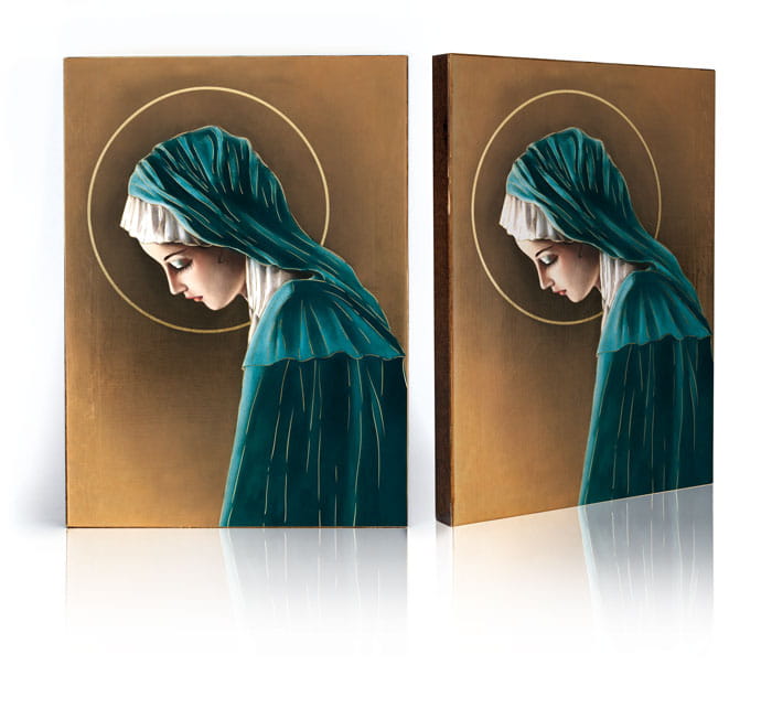 • Ręczne złocenie – nadaje sakralny blask i podkreśla piękno wizerunku.