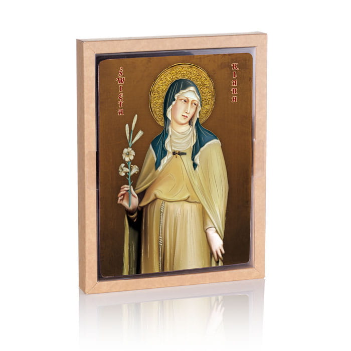 Ikona religijna Ikona Religijna Święta Klara to ponadczasowy wizerunek, który umacnia wiarę i wnosi pokój do domu. Ikona Religijna Święta Klara – Symbol Wiary i Nadziei Ikona religijna. Idealna do modlitwy i kontemplacji, pomaga skupić serce na tym, co najważniejsze.