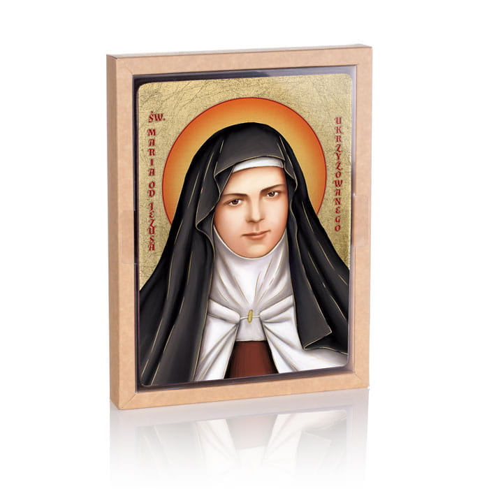 Ikona religijna Ikona Religijna Święta Maria od Jezusa Ukrzyżowanego (Mała Arabka) to ponadczasowy wizerunek, który umacnia wiarę i wnosi pokój do domu. Ikona Religijna Święta Maria od Jezusa Ukrzyżowanego (Mała Arabka) – Symbol Miłości, Pokoju i Opatrzności Bożej Ikona religijna. Idealna do modlitwy i kontemplacji, pomaga skupić serce na tym, co najważniejsze.