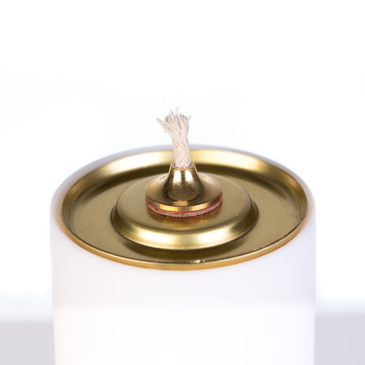 Świeca liturgiczna w kolorze białym z bardzo trwałego tworzywa doskonale imitującego prawdziwą parafinę. Posiada wkład olejowy regulowany lub bez regulacji.