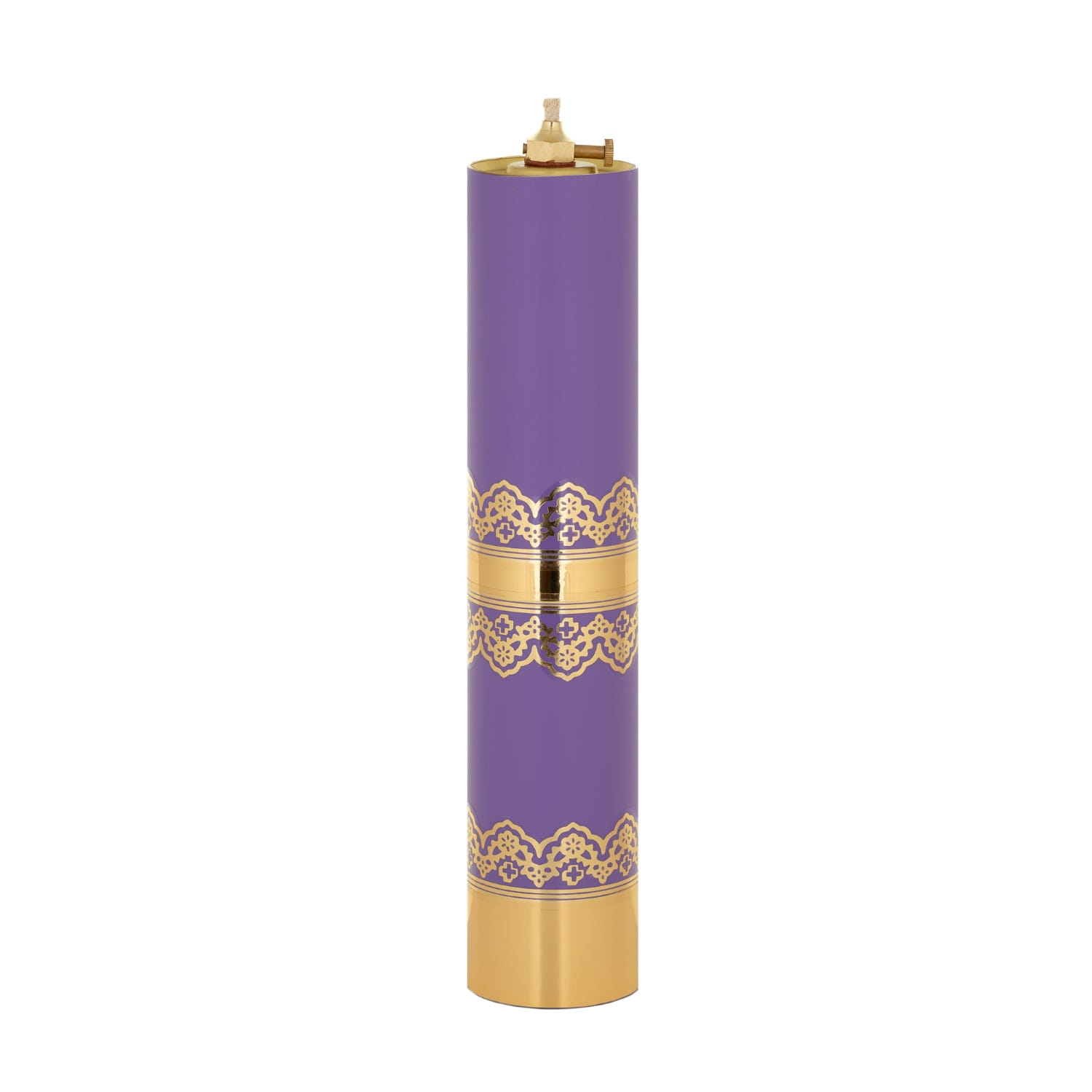 Świeca liturgiczna w kolorze fioletowym wykonana z bardzo trwałego tworzywa. Posiada wkład olejowy regulowany lub bez regulacji.