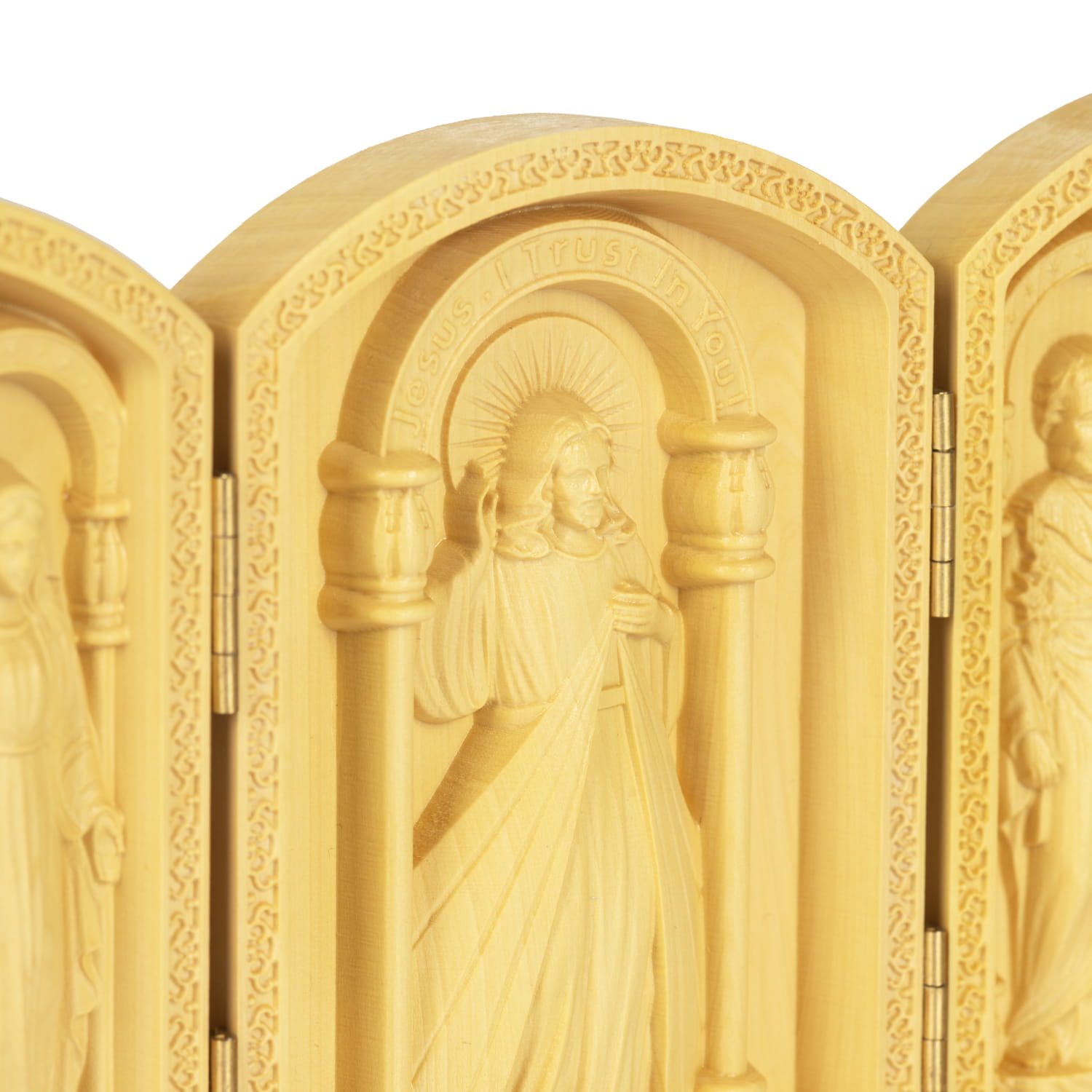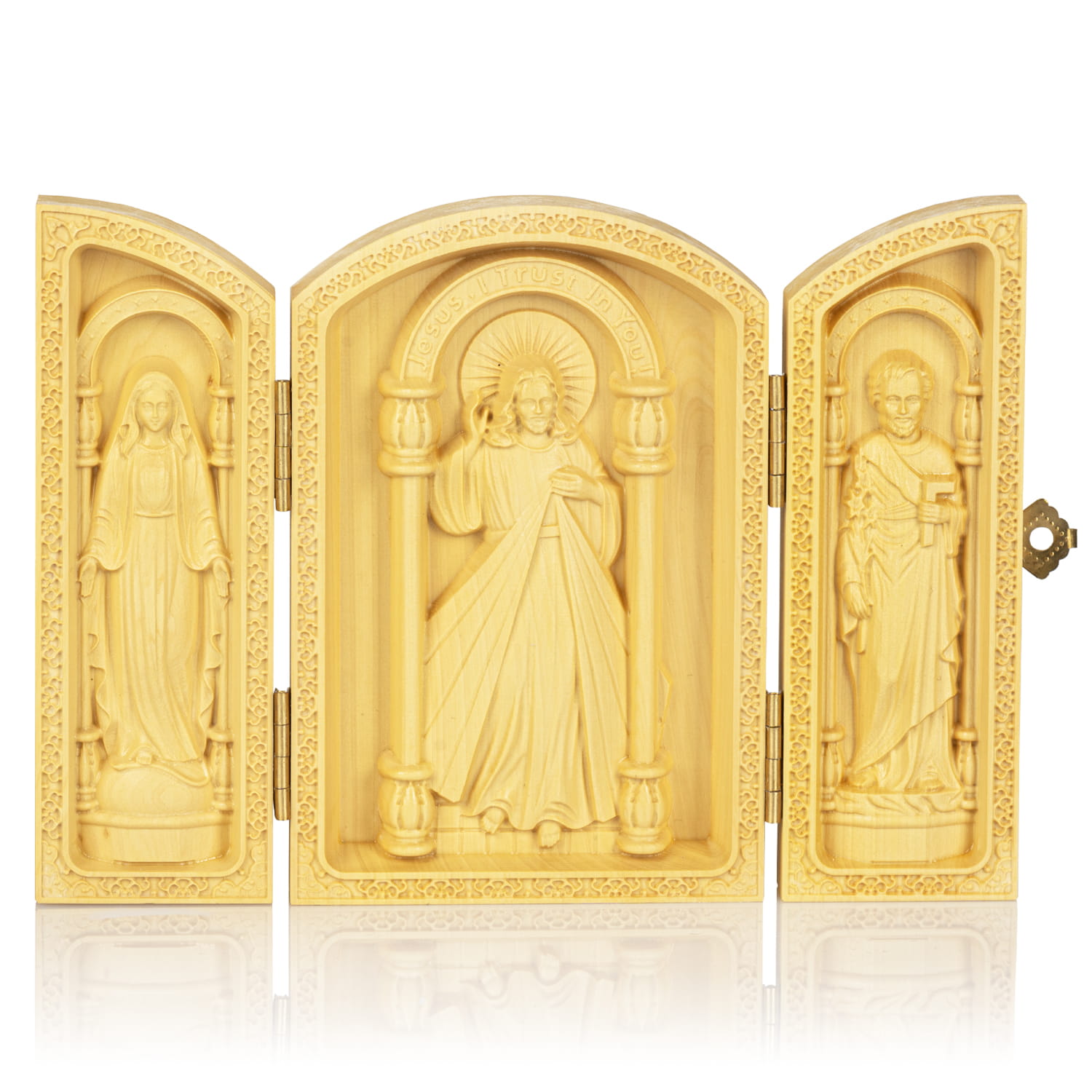 Tryptyk - Matka Boża Niepokalana - Jezus Miłosierny - św. Józef Robotnik - drewno - 10 cm